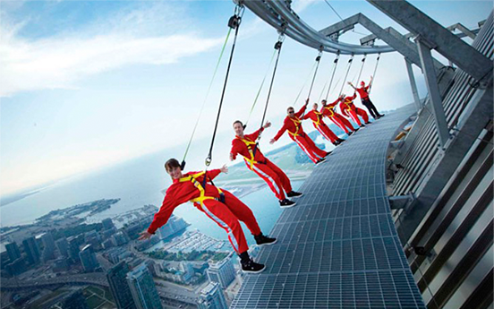 – екстремальний атракціон, у якому шукачі гострих відчуттів можуть ходити по краю даху головного кільця вежі на висоті 356 метрів (116 поверхів) над землею.